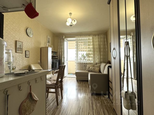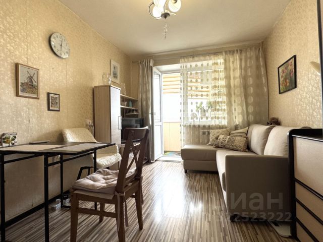 Комната 11,4 кв.м., высота потолка 2,50 м., есть незастекленная лоджия, из окна комнаты хороший вид на город - нет вида окна в окна, окно выходит на юг. Под окнами зеленый двор где не паркуют машины.