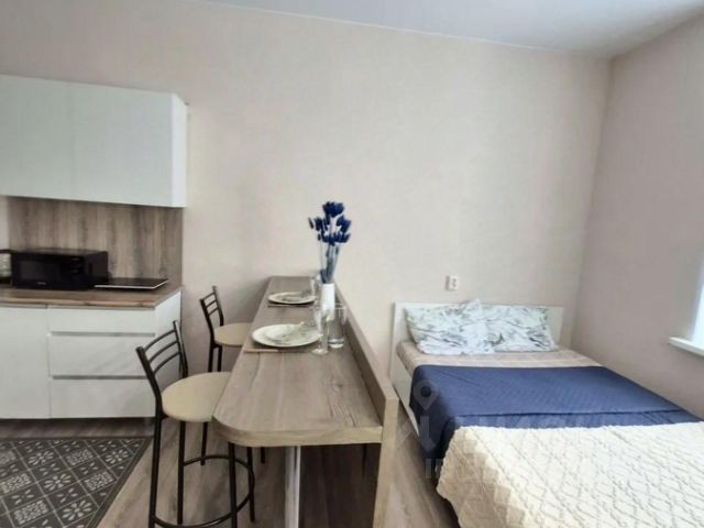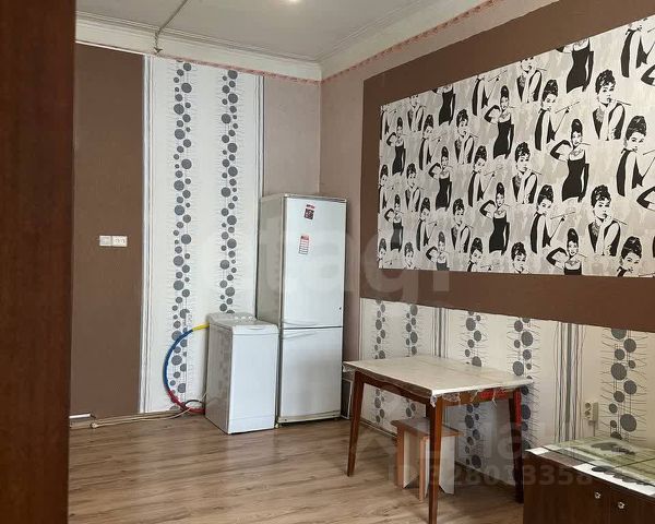 В комнате произведено зонирование (зона отдыха и зона кухни). Высота потолков 3,20 м.. Данный объект недвижимости отличный вариант для обустройства комнаты в отдельную 2-х этажную квартиру-студию. Кухня 11,5 кв.м., имеется несколько плит, стол для готовки. Душ. Туалет закреплен только за нашей комнатой. В квартире имеется отдельное тех помещение, где установлены стиральные машины.
