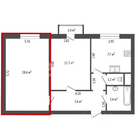 Чистая, уютная и светлая комната правильной прямоугольной формы. Хорошее состояние.