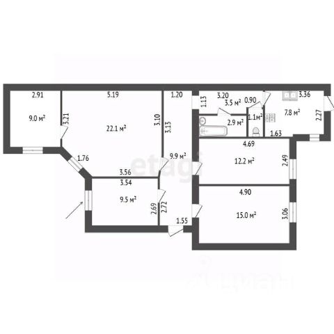 - Продается комната 6 площадью 19,7 кв.м. (смотрите на план квартиры, комнаты пронумерованы).