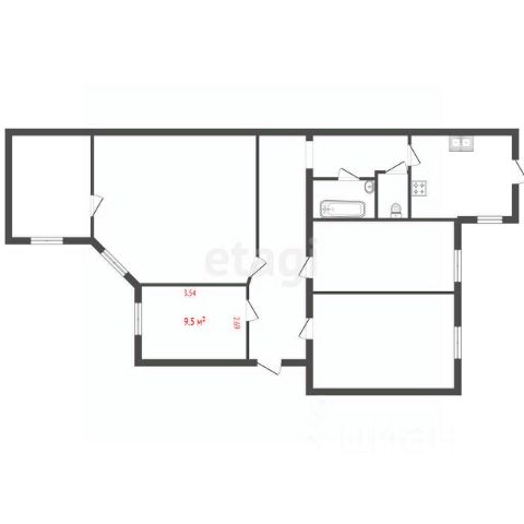 Комната 16,5 метров, доля жилая 17/106.