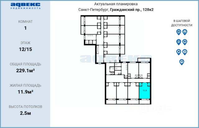 Номер объекта: #1/536947/24690 Продам комнату На проспекте Гражданский в Санкт-Петербурге.