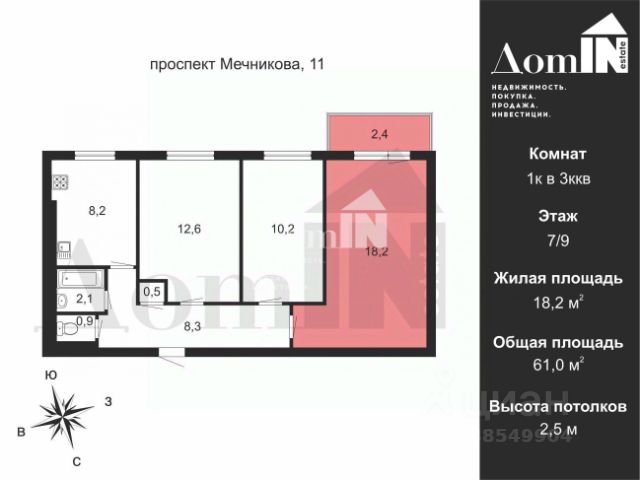 Если Вам интересен добротный сталинский дом с шикарным местоположением, комнатой с балконом и небольшим количеством соседей, с минимальным недостатком в отсутствие ремонта мест общего пользования, то это может быть ваш выбор.
