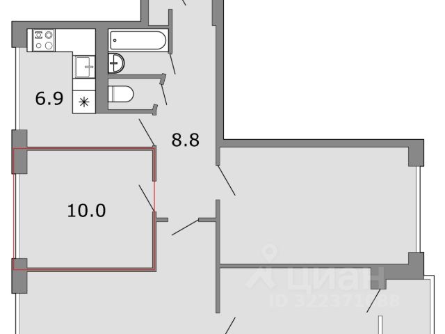- КУХНЯ (6,8 м²) довольно просторная и имеет выход на БАЛКОН (4 0. м²)