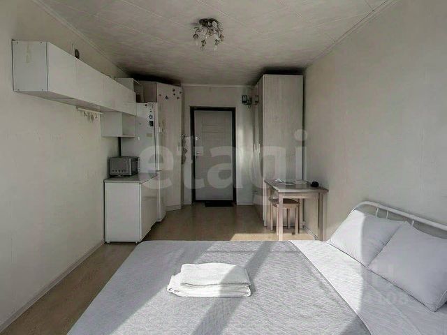 В комнате произведено зонирование (зона отдыха и зона кухни). Высота потолков 3,20 м.. Данный объект недвижимости отличный вариант для обустройства комнаты в отдельную 2-х этажную квартиру-студию. Кухня 11,5 кв.м., имеется несколько плит, стол для готовки. Душ. Туалет закреплен только за нашей комнатой. В квартире имеется отдельное тех помещение, где установлены стиральные машины.