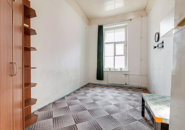Удобный 4-й этаж. Комната находится в конце коридора, рядом со всеми стояками, что является бесспорным плюсом.