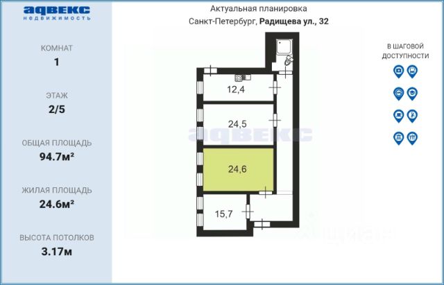 В шаговой доступности остановки всех видов транспорта, такси и каршеринг.