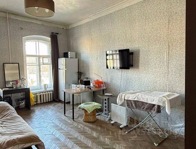 Квартира малонаселенная. Окна выходят на юго-запад, на пер. Джамбула, солнечная сторона. Вид на крыши, на Фонтанку.