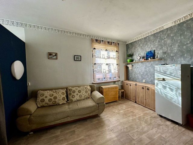 Комната небольшая, но меблирована всем необходимым. Кровать, стол, стул, шкаф, открытая вешалка, холодильник есть, остаются при продаже. Окно большое, выходит во двор. Зимой в комнате тепло, летом прохладно - дом 1910 года постройки, с толстыми стенами. Комната находится рядом с прачечной, напротив кухни. Дверь в комнату крепкая, основательная, хорошо отсекает звуки и запахи.