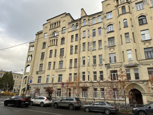 Видовая комната с балконом на 3-м этаже доходного дома К.Г. Чубакова, 1914 г. постройки. Дом является объектом культурного наследия и расположен на набережной реки Карповки вблизи Иоанновского монастыря, в 10 мин. ходьбы от метро Петроградская. Вход парадный, с набережной. Комната теплая, уютная, правильной формы, площадью 23,4 м. с высотой потолка 3,6 м. На потолке сохранена историческая лепнина. Из окна и балкона открывается живописный вид на собор Иоанновского монастыря, реку Карповку и Карповский мост. Местоположение относительно спокойное, не загруженное транспортом. В комнате выполнен качественный ремонт. Установлены деревянные окна и балконная дверь с хорошим стеклопакетом. Пол отремонтирован включая "черновой", настелено покрытие шпунтованной доской из ангарской лиственницы. Материал перекрытий - металлические балки с деревянным заполнением . Комната планировалась как творческий кабинет для временного пребывания. Создавалась соответствующая обстановка, включая старинную мебель. Квартира спокойная, малонаселенная, без арендаторов. Постоянно проживают только 2 собственника. Места общего пользования содержатся в чистоте. Два раздельных санузла, отдельная ванная комната. Просторная кухня 21.5 м. В доме заменена кровля, планируется обновление фасада. Два взрослых собственника, владеют комнатой более 5 лет. Без ограничений и долгов. Нотариальные отказы соседей получены.
