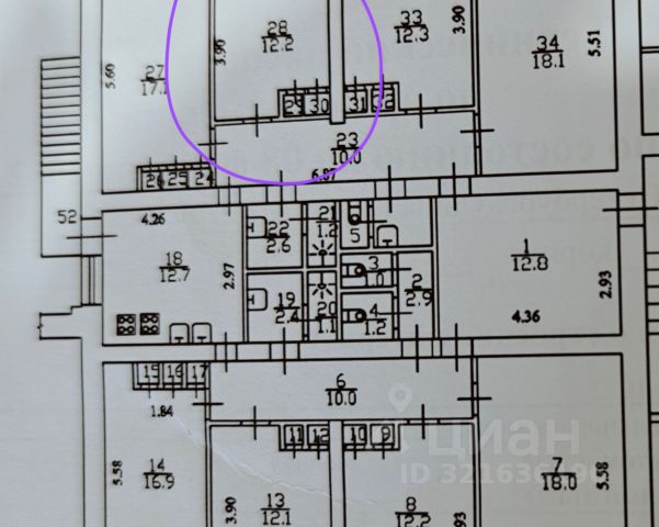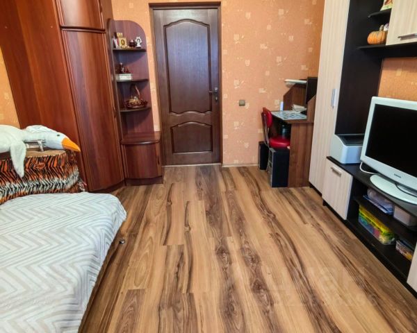 В 8-комнатной квартире на 4 семьи продаются 2 комнаты: кухня-гостиная и спальня. Площадь комнат — 17,3 и 12,7 м², общая площадь в собственности — 54 м². Идеальный вариант, если вы приехали учиться или работать вместе со своей семьей.
