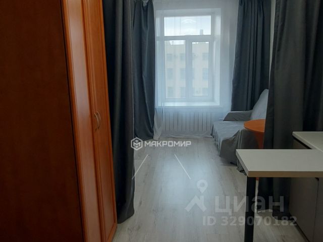 -В комнате сделан качественный евроремонт. Натяжной потолок. Пол-ламинат. Окно-стеклопакет с видом на здания с офисами и техническими помещениями, расположенными на закрытой территории, что гарантирует постоянную тишину.