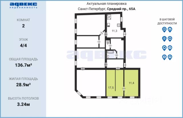 • ✓ В базе объявлений Циан 5 комнат на проспекте Средний Васильевского острова в Санкт-Петербурге.