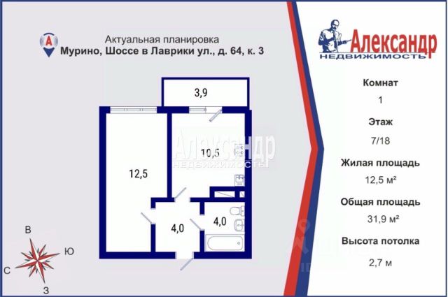 • ✓ В базе Циан 2 комнат (вторичка) в Мурино.