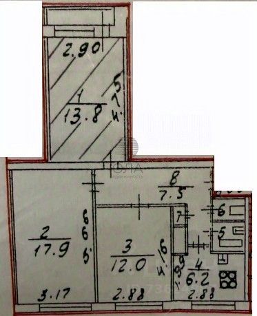 Продается комната в 2-комнатной перспективной квартире. В комнате два собственника. Состояние среднее.