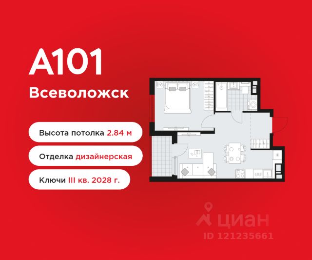 1-комнатная квартира площадью 39.80 в ЖК "А101 Всеволожск" c лоджией на 7 этаже. Квартира с отделкой. Вид из окна во двор. В квартире 1 санузел. Высота потолков 2.84 м. ОТДЕЛКА Для квартир с чистовой отделкой предлагается три варианта дизайна: Классика, Карелия светлая и Карелия темная. Варианты всех дизайнерских решений представлены на фотографиях. Подробности можно уточнить у менеджера. На все отделочные работы от застройщика предоставляется гарантия. ДВОРЫ И ОКРУЖЕНИЕ Большая часть территории комплекса отведена под зелёные благоустроенные зоны: теневые сады, уютные городские пространства с развитой тротуарной сетью и велодорожками - всё для вашего активного и здорового образа жизни. Внутренние дворы закрыты от посторонних и свободны от автомобилей. Каждый дом оснащён высокотехнологичными системами видеонаблюдения и контроля доступа, обеспечивая максимум безопасности и спокойствия для вас и ваших близких. Окружение района - живописный природный ландшафт. Всего в 5 минутах ходьбы располагается Ковалёвский лесопарк - источник кислорода, пространство для спорта, отдыха и приятных прогулок на свежем воздухе. ПАРАДНАЯ Мягкая мебель, живые растения и натуральные материалы в отделке формируют современный и уютный интерьер входной группы, радующий глаз и создающий приятную атмосферу для встреч с гостями. Для вашего удобства реализован безбарьерный вход, отвечающий требованиям доступной среды для всех жильцов, а также в каждой парадной имеется отдельное помещение для хранения колясок и велосипедов. ИНФРАСТРУКТУРА В жилой застройке сохранена естественная среда благодаря разнообразию растительности, извилистым дорожкам и уличной мебели из натуральных материалов. Здесь находится насыщенная сеть экотроп протяжённостью более 10 км прямо у дома, а просторная площадь позволяет жителям приятно провести время, общаться с соседями и отдыхать. Также предусмотрены зоны для отдыха и специально оборудованные спортивные площадки для активного образа жизни на свежем воздухе. На территории района ГК "А101" создает современный учебно-образовательный кластер, В "А1О1 Всеволожск" предусмотрена современная школа на 1300 учеников и 2 детских сада Всё самое необходимое - рядом с вашим домом. Выпить утром кофе в уютном кафе или поужинать с друзьями, отвести детей на развивающие занятия или игровую площадку, купить продукты и товары первой необходимости. В проекте запланировано уникальное гастрономическое пространство, располагающееся на основном пешеходном бульваре жилого района. Территория дополнительно оборудована местами отдыха на свежем воздухе, а для ресторанов и кафе будет предусмотрена возможность организации летних веранд. ЗАСТРОЙЩИК ГК "А101" - один из крупнейших застройщиков России. Каждая восьмая квартира, проданная в Москве, находится в районе, построенном компанией, что подчеркивает её значимость и успех на рынке недвижимости.
