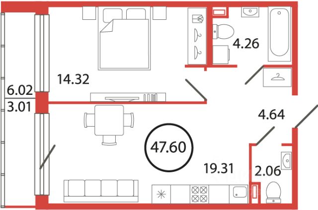 Продается 1-комнатная квартира в Квартале "Охтинские Высоты".