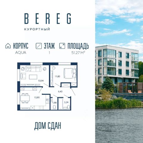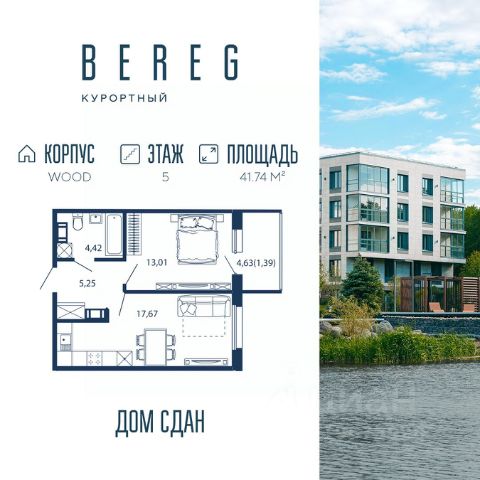 Апартамент 523 площадью 41,74 кв.м. в корпусе Wood с видом во двор Дом сдан!!! О проекте: "Bereg. Курортный" первый проект петербургского девелопера ELEMENT (ранее Element Development) в Санкт-Петербурге, который был сдан в мае 2024 года. Малоэтажный проект расположен в тихой части Сестрорецка, в окружении парков "Гагарка" и "Дубки", на берегу живописного канала. В составе комплекса три корпуса: AIR, AQUA и WOOD ("Воздух", "Вода" и "Дерево"), которые включают 715 апартаментов, в том числе юниты с террасами-патио на первом этаже. Комплекс обеспечен всей инфраструктурой для комфортной жизни от детского клуба до собственной спа-зоны с бассейном, сухой сауной и тренажерным залом. "Курортную" атмосферу поддерживают концепция "двор без машин", перголы для отдыха, детские площадки в стиле "эко", променад на набережной с "островками" для медитации, а также зеленое благоустройство от Derevo Park на 28 000 растений. "Bereg. Курортный" ("Берег Курортный") расположен в тихой части Сестрорецка, в окружении заповедного лесопарка "Гагарка". Напротив, проекта любимый петербуржцами парк "Дубки". Всего в 300 метрах от комплекса находится небольшой яхт-клуб, где можно оставить свой катер или небольшую яхту. Преимущества "Bereg. Курортный" ("Берег Курортный"): 3 корпуса; 5 этажей; Концепция "двор без машин"; Закрытая территория с системой контроля доступа; Своя инфраструктура: лобби, бассейн, коворкинг, детский клуб; Собственная благоустроенная набережная; 300 метров до Финского залива; Рядом расположен в лесопарке; Эко-тропа с выходом в лесопарк "Гагарка"; ELEMENT создаёт инновационные жилые и коммерческие объекты в Санкт-Петербурге и Москве, которые устанавливают новые стандарты эффективной жизни в мегаполисах.