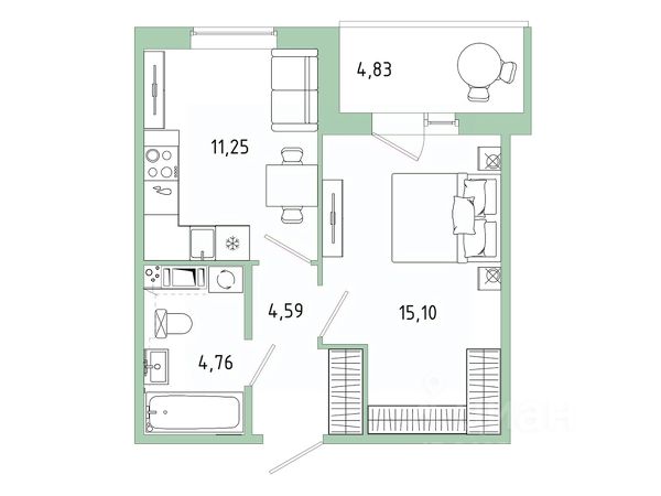 Продаётся 1 комнатная квартира 97 в ЖК IQ Гатчина, 5 оч., к. 1