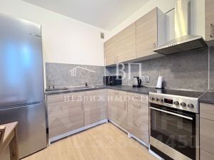 Мебель фирмы Икея, в комнате кровать и диван, этажерка, платяной шкаф, письменный стол, на кухне кухонный гарнитур, двухкамерный холодильник, микроволновка, электрическая плита с духовым шкафом, вытяжка, стол и стулья, остаётся икеевская посуда. В ванной: сантехника, ванна, стиральная машина, раковина с тумбой, зеркало навесное, полотенцесушитель.
