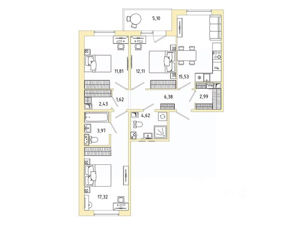 Продается трехкомнатная квартира 169 в ЖК IQ Гатчина