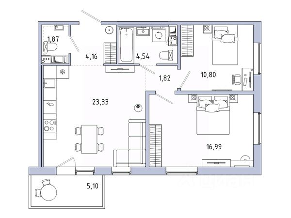 Продается двухкомнатная квартира 96 в ЖК IQ Гатчина