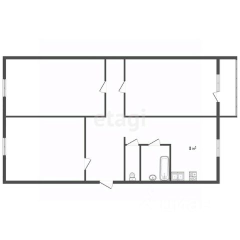 Две раздельные, просторные комнаты и кухня хорошей площади. Установлен бойлер на 100 литров, значит никаких проблем с горячей водой. Газовая плита. Установлены счетчики