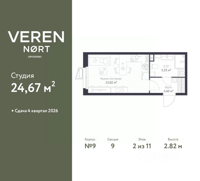 Продаётся студия в строящемся доме (Корпус 8.2), срок сдачи: IV-кв. 2025, общей площадью 25.67 кв.м., на 1 этаже. ЖК расположен в Сертолово, мкр.Черная речка. 25 минут на машине до метро Парнас, либо 30 минут до метро Пр.Просвещения.