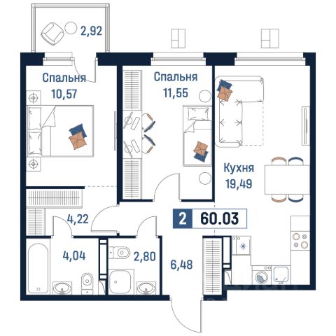 2-комн. квартира от застройщика с отделкой в ЖК "Аквилон RIVA" на 9 этаже. Общая площадь: 60.28 кв.м., площадь просторной кухни-столовой: 18.28 кв.м. Высота потолков 2.73 м. Дом монолитный, трехподъездный, переменной этажности, от 16 до 20 этажей. Квартира находится в 1-й секции высотой 20 этажей в корпусе 1. На этаже 15 квартир. В подъезде 2 пассажирских и 1 грузовой лифт. Окончание строительства - 4 квартал 2027 года. Оформление сделки по договору долевого участия. В шаговой доступности от дома расположена станция метро (расстояние по прямой) "Девяткино" (1.9 км). ЖК "Аквилон RIVA" - жилой комплекс комфорт класса у метро Девяткино от Группы Аквилон В самом сердце двора раскинулся собственный водоём — не просто украшение, а часть вашей повседневной жизни. Летом — это благоустроенная набережная для прогулок, отдыха в тени деревьев и тихих вечеров у воды. А зимой водоём превращается в залитый каток — место, где звучит смех, скользят коньки и рождаются семейные традиции. Здесь каждое время года раскрывает свой характер. Зона уединения: Места для занятия йогой и медитаций Мульти скворечники Качели с подсветкой для уютных бесед Высокие скамейки на набережной для отдыха и чтения на свежем воздухе Активная зона: Развивающие детские площадки для разных возрастов Спортивные площадки с зоной Ворк-аут, Столы для настольного тенниса Площадка для пляжного волейбола Преимущества Увеличенные окна с заполнением аргоном Корзины под кондиционеры Сити-боксы вместо балконов Безбарьерная среда Бесшумные скоростные лифты Контроль доступа на территорию и видеонаблюдение Отделка квартир Чистовая отделка в трех цветовых решениях: Sand, Terra и Graphite Дозаказ для любой квартиры Стандарты Группы Аквилон для вашей комфортной жизни Thermo-S экономия на коммунальных платежах за счет дополнительно утепленных стен, кровли и цоколя. Энергоэффективные окна с селективным покрытием и аргоновым заполнением Soundstop - дополнительная шумоизоляция внутренних перегородок и межэтажных перекрытий, шумозащитные окна, малошумные лифты Light-in - в квартирах устанавливаются широкоформатные окна, увеличены на 30%. Высота подоконников на уровне 60 см от пола. Vent-in - в каждой комнате есть клапаны индивидуальной вентиляции, которые обеспечивают приток свежего воздуха с улицы. inHOME умный дом в каждой квартире Интеллектуальная цифровая система, которая позволит дистанционно решать бытовые вопросы, управлять квартирой и экономить на оплате коммунальных услуг. В состав inHOME входят: IP-домофон, Face key, "умные" счетчики, датчики протечки, дистанционное отключение розеток, и т.д. Паркинг Отдельно стоящий 3-х уровневый паркинг Электрозарядки на территории ЖК Локация м. Девяткино 5 минут Центр города - 20 минут КАД 5 минут. #z63M9F Продается квартира 60 м2 в Мурино.