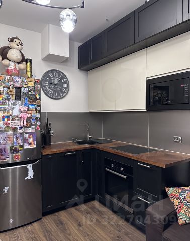 В квартире стильная дорогая кухонная мебель. Зеркальный фартук с подсветкой визуально увеличивает пространство. Встроенная техника: посудомойка, стиральная машина, плита, вытяжка и прочее качественное, покупалось для себя. Фурнитура кухни - Blum.