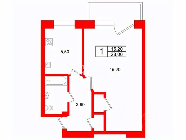 Общая площадь 56.7 кв.м + открытая лоджия.
