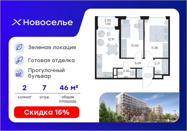 Продаётся 2-комн. квартира площадью 55,74 кв.м на 5 этаже 12 этажного дома (Корпус 4.1, Секция 1) проекта ПИК Таллинский парк. Светлый просторный подъезд на уровне земли, функциональная планировка, большие окна, без отделки. "Таллинский парк" - проект в Ленинградской области, в районе Новоселье. До станции метро "Проспект Ветеранов" - 15 минут на автомобиле, а до КАД можно доехать всего за 4 минуты. "Таллинский парк" включает 16 жилых домов, детский сад и школу. В проекте появится центральный сквер с обильным озеленением, а через весь квартал протянутся широкие пешеходные бульвары. В зелёных дворах-парках будут оборудованы современные детские и спортивные площадки, обустроены места для отдыха. На первых этажах разместятся магазины, кафе и другие сервисы. Проектом предусмотрены персональные кладовые помещения - это доступный, экономичный и удобный способ хранения сезонных и крупногабаритных вещей. Освободите свою квартиру для полноценной жизни. Район Новоселье активно развивается в городском формате: здесь уже работают детские сады, школа и магазины. Для любителей зимних видов спорта открыта круглосуточная ледовая арена. За покупками и развлечениями также можно быстро доехать: 10 минут - и вы в Аутлете Таллинское, гипермаркетах Лента, Леруа Мерлен и Окей. В 10 минутах на автомобиле находится Финский залив, на берегу которого расположились объекты культурного наследия. Рядом - Константиновский парк с отреставрированным дворцом, а чуть дальше расположена усадьба Знаменка. В великолепном Петергофе вы будете уже через 20 минут. Артикул 1026135 (Застройщик ООО "СПЕЦИАЛИЗИРОВАННЫЙ ЗА СТРОЙЩИК "СТРОЙ-ЭКСПЕРТ ") [cn_sbp_1807052]