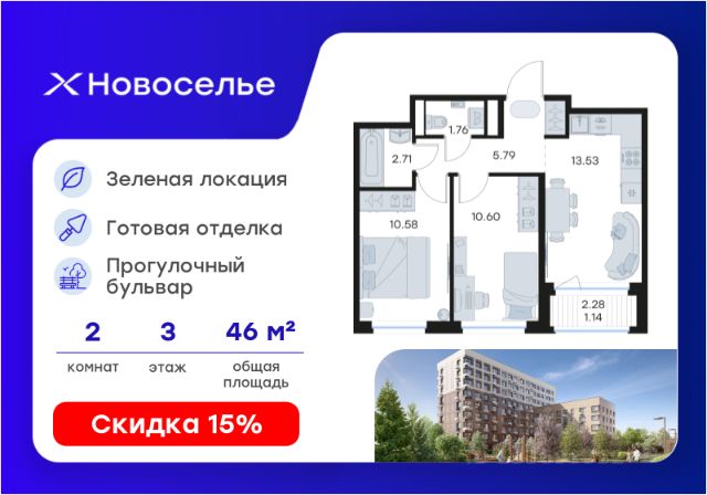 Продаётся 2-комн. квартира площадью 52,22 кв.м на 4 этаже 12 этажного дома (Корпус 4.1, Секция 1) проекта ПИК Таллинский парк. Светлый просторный подъезд на уровне земли, функциональная планировка, большие окна, без отделки. "Таллинский парк" - проект в Ленинградской области, в районе Новоселье. До станции метро "Проспект Ветеранов" - 15 минут на автомобиле, а до КАД можно доехать всего за 4 минуты. "Таллинский парк" включает 16 жилых домов, детский сад и школу. В проекте появится центральный сквер с обильным озеленением, а через весь квартал протянутся широкие пешеходные бульвары. В зелёных дворах-парках будут оборудованы современные детские и спортивные площадки, обустроены места для отдыха. На первых этажах разместятся магазины, кафе и другие сервисы. Проектом предусмотрены персональные кладовые помещения - это доступный, экономичный и удобный способ хранения сезонных и крупногабаритных вещей. Освободите свою квартиру для полноценной жизни. Район Новоселье активно развивается в городском формате: здесь уже работают детские сады, школа и магазины. Для любителей зимних видов спорта открыта круглосуточная ледовая арена. За покупками и развлечениями также можно быстро доехать: 10 минут - и вы в Аутлете Таллинское, гипермаркетах Лента, Леруа Мерлен и Окей. В 10 минутах на автомобиле находится Финский залив, на берегу которого расположились объекты культурного наследия. Рядом - Константиновский парк с отреставрированным дворцом, а чуть дальше расположена усадьба Знаменка. В великолепном Петергофе вы будете уже через 20 минут. Артикул 1026117 (Застройщик ООО "СПЕЦИАЛИЗИРОВАННЫЙ ЗА СТРОЙЩИК "СТРОЙ-ЭКСПЕРТ ") [cn_sbp_1841743]