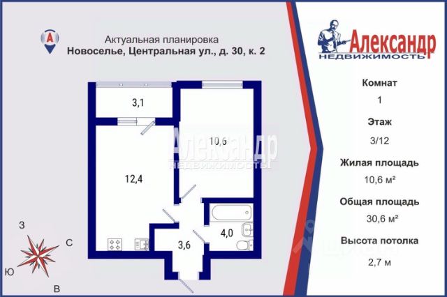 1705709 Предлагаем к продаже однокомнатную квартиру 30,6 м²., с большой кухней 12,4 м²,. и комнатой правильной формы 10,6 м²., в современном 12-ти этажном квартале ЖК "Полис-Новоселье". Подчистовая отделка. Дом сдан и активно заселяется. Уникальная локация и свежий воздух: до метро "Проспект Ветеранов" 15 минут на машине, недалеко до парков Петродворца и Стрельны. Выезд на КАД в 7-ми минутах. Прямая продажа, без обременений.