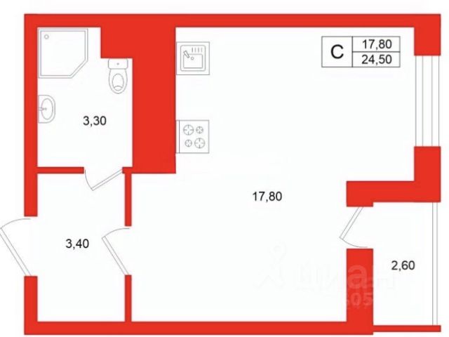 - санузел 4,2 м2