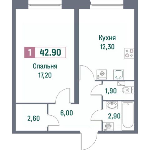 Общая площадь квартиры - 30.1 метров,
