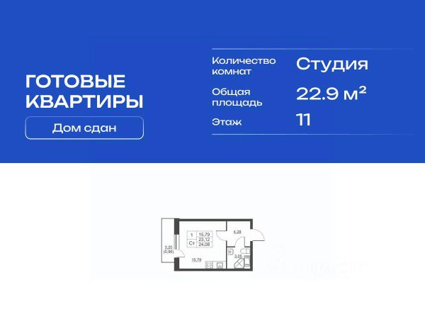 • ✅ Минимальная площадь: 22,3 м²