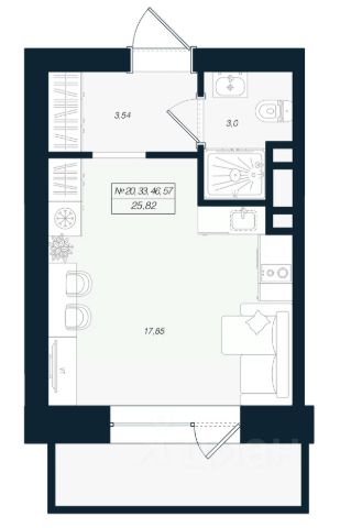 Продаётся студия в строящемся доме (Феникс), срок сдачи: I-кв. 2027, общей площадью 25.82 кв.м., на 3 этаже.