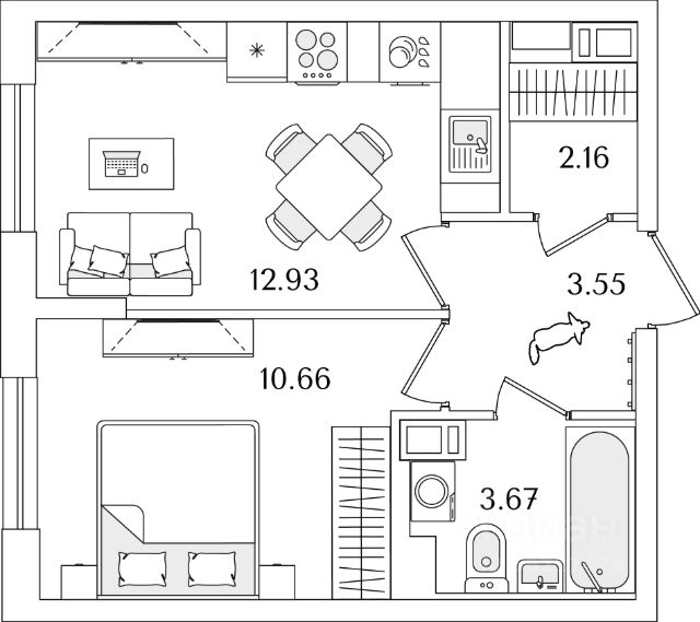 Уникaльная плaниpовкa квартиры SMART , каждый кв.метр используется рационально, с прекрасными видовыми характеристиками и панорамным остеклением.