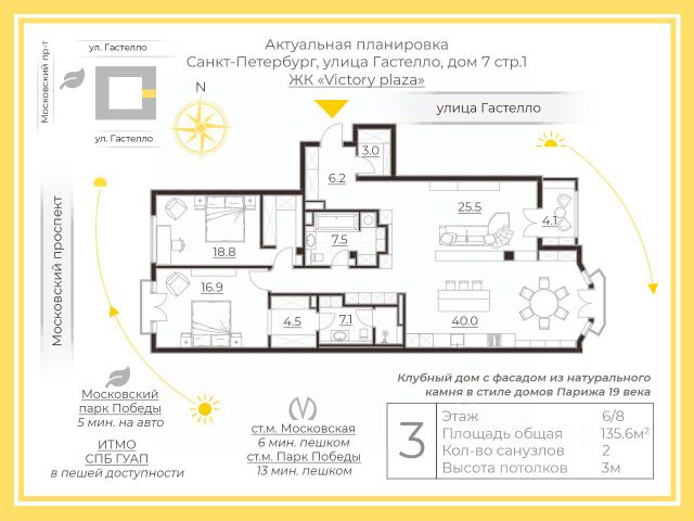 Продаётся 3-комнатная квартира в сданном доме (Московский, 183-185Ак8), срок сдачи: II-кв. 2020, общей площадью 150.6 кв.м., на 4 этаже. Расположение, транспортная доступность