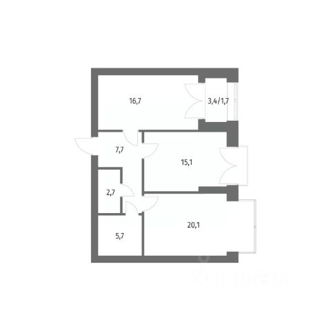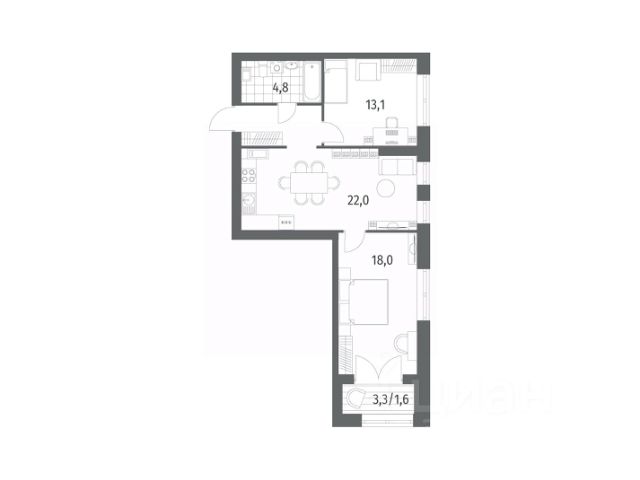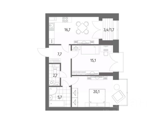 Два санузла: 3,8 м² с ванной + 1,8 м² гостевой
