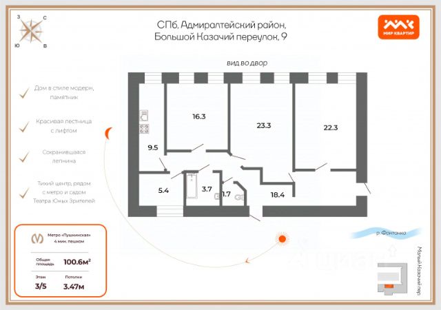 Арт. 99723550 Дом 1929 г., с толстыми кирпичными стенами, перекрытиями из кирпичных сводов по стальным балкам, широкими лестничными пролетами и высокими потолками. Сама квартира - гибкое пространство под ваш образ жизни: Три изолированные комнаты 22,5 + 12,3+ 9,5 м² позволят создать отдельные зоны для семьи, работы или гостей. Для тех, кто любит простор - маленькие комнаты можно с легкостью объединить, получив шикарное пространство в 25 м². Небольшой практичный холл и кладовка - возможность организовать современные, удобные системы хранения. Возможность создать комфортное для Вас пространство без переплаты за "чужой" дизайн. Инфраструктура: Дом расположен на тихой, не туристической улице. При этом имеются все преимущества Центра: рядом буквально всё - от кофеен до больших торговых центров, от детских садов до университетов, от сквериков до театров, музеев, клубов и общественных пространств. Лучшая транспортная доступность! 5 минут до м. Лиговский проспект (оранжевая ветка) 10 минут до м. Обводный канал (фиолетовая) 12 минут до м. Владимирская (красная ветка) 12 минут до м.Звенигородская/Пушкинская А также наземный транспорт в любую часть Петербурга. Детали: В 2021 г. был произведен капитальный ремонт внутридомовых инженерных систем водоснабжения и водоотведения. Один собственник. Прямая продажа. Полная цена в договоре. Возможна ипотека. Есть обременение. Звоните! Приходите на просмотр! Если для покупки Вам необходимо продать свою квартиру - обращайтесь, поможем!
