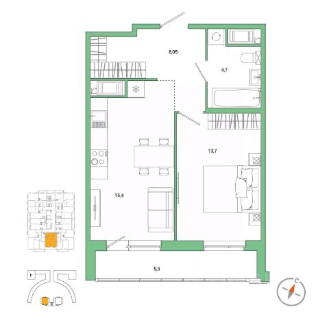 Продаётся 1-комнатная квартира в сданном доме (Дом 11к1 (Корпус 5.1.1)), срок сдачи: I-кв. 2025, общей площадью 34.6 кв.м., на 1 этаже. Жилой комплекс Окла находится в Приморском районе Санкт-Петербурга, в самом сердце зеленого массива на 140 гектаров. Рядом с комплексом расположены Суздальские озера и Шуваловский парк, а в 10 минутах езды Юнтоловский заповедник. Здания проекта органично вписаны в холмистый ландшафт с вековыми елями, где водятся зайцы, ежи, бобры и птицы. Концепция Окла это "город в городе": семиэтажные корпуса и высотные здания в неоклассическом стиле окружены лесным массивом, а внутри квартала находятся широкие европейские пешеходные улицы и променады, торговые зоны, кафе, спортивные клубы, площадки для спорта и детских игр