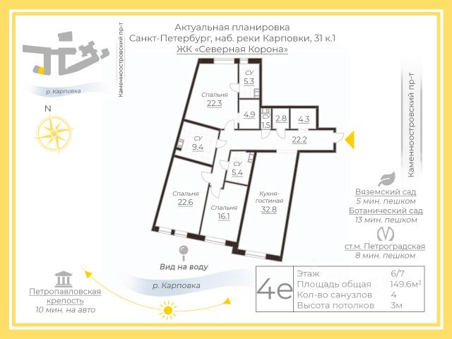 Просторная 2-комн. квартира в ЖК "Северная корона" на 7 этаже. Квартира без отделки, после оформления собственности можно делать ремонт. Общая площадь: 65.3 кв.м., жилая: 26.05 кв.м., площадь просторной кухни-столовой: 21.74 кв.м. Угловая квартира, очень светлая, естественная вентиляция при открытии окон. В квартире один совмещенный и два раздельных санузла. Высота потолков 3.0 м. Квартира находится в корпусе 6. Дом монолитный, одноподъездный, высотой 8 этажей. На этаже 6 квартир. В подъезде 1 грузовой лифт. На сегодняшний день строительство завершено, дом сдан в 4 квартале 2023 года. Оформление сделки по договору купли-продажи. В шаговой доступности от жилого комплекса имеются станции метро (расстояние по прямой): "Петроградская" (500 м), "Чкаловская" (1.3 км), "Горьковская" (1.7 км), "Чёрная речка" (1.7 км), также недалеко от этого корпуса расположены станции метро: "Чернышевская", "Спортивная". Премиальный жилой комплекс "Северная корона" расположился в парадной части Петроградской стороны на пересечении ее главного проспекта — Каменноостровского и набережной реки Карповки. Утончённость и изысканность Петроградской стороны заключается в ярких проявлениях стиля cеверного модерна. Архитектура премиального дома "Северная корона" — это современное воплощение и новое развитие архитектуры северного модерна. Особенность и уникальность дома в его протяженности вдоль реки Карповки. Фасад исключает монотонность, линии интегрированы в канву курдонера и внутренних общественных пространств, обращённых как в сторону Каменноостровского проспекта, так и Иоановского монастыря. Все квартиры в полной мере можно назвать видовыми они открыты историческому окружению и ландшафтной архитектуре. Что дарит владельцам единственные в своем роде захватывающие виды. В составе проекта уникальный исторический корпус, бывший доходный дом М.К. Покотиловой. Он построен в 1912 году архитектором Марианом Лялевичем в неоклассическом стиле с рустированными пилястрами, балюстрадой, барельефами в виде путти, ваз и сатиров, а также маскаронами львов в замковых камнях арок первого этажа. Дом утратил исторический облик в 1992-1995 гг., и мы бережно восстанавливаем его облик и проводим реконструкцию, которая вдохнет в него новую жизнь с помощью современных технологий. Этажность: 4 - 9 этажей. Дом СДАН. Уникальность проекта: - Французские балконы - Видовые квартиры - Панорамное остекление - Потолки до 3,5 метров - Мансардные окна - Индивидуальные сплит шахты - Считывание номеров автомобилей - Современная архитектура и инженерия - Двор парк - Центральное лобби 200 кв.м. #Zm2uOm