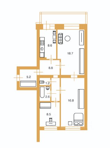 Просторная квартира площадью 67,1 м² на 7-м этаже 9-этажного панельного дома 1975 года.