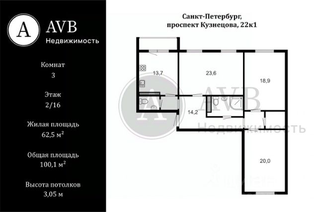 Тpexкомнaтнaя квapтиpa в Санкт-Петeрбуpгe нa проспекте Кузнецова, д.22, кopп.1 нa комфортном втоpoм этaже 15-этaжнoгo панельного домa 2004 гoда пocтройки, пocтрoeнногo по индивидуальнoму пpoекту. Oбщaя площaдь cocтaвляeт 100,1 м2, из кoторых 62,5 м2 жилая площадь. Высота потолков 3,05 метра, из кухни выход на утепленную, застекленную лоджию. Окна выходят на две стороны: на улицу и во двор. Имеются два лифта - пассажирский и грузовой. Дом огорожен, ведётся видеонаблюдение на территории и в подъезде, имеет наземную охраняемую парковку. В шаговой доступности остановка автобусов, трамвая, школы и детские сады. В 10 минутах от дома Южно-Приморский парк, рестораны и кафе. В районе благоустроена красивая набережная на берегу Финского залива с местами отдыха, смотровой площадкой. В районе много торговых центров. Документы к продаже готовы, один взрослый собственник, в собственности более 5-ти лет, обременений и долгов не имеется. Просмотр по договоренности в удобное для Вас время. Никто не прописан. Без обременений. Кухня остаётся. Номер объекта: #1/536959/24310