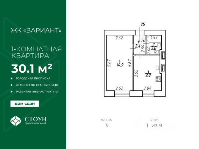 • ✅ Минимальная площадь: 19,3 м²