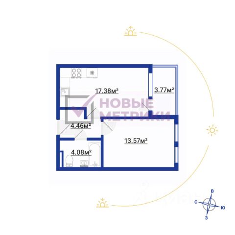 • Стороны света: трёхсторонняя - юго-восток, юг, юго-запад солнце в квартире с 10 утра и до заката