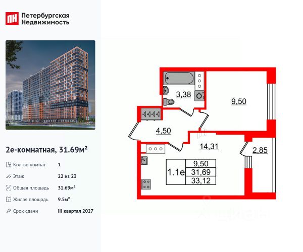 Квартира сдаётся в II квартале 2026 года.
