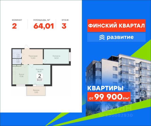 Продается квартира площадью 56.05 кв. м без отделки. Квартира расположена на 1 этаже 7 этажного дома, в жилом комплексе комфорт-класса "Финский Квартал". - без отделки - все ипотечные программы: стандартная, семейная, IT, военная - аккредитация в 15+ банках - первоначальный взнос от 20% (по условиям банка) - акция не суммируется с другими спецпредложениями "Финский квартал" - это уникальный проект комфорт-класса для тех, кто хотел бы жить на природе, но при этом находиться вблизи Северной столицы. Расположенный в окружении одного из самых крупных парков Ленобласти - Лахтинского, проект предлагает своим жителям доступную инфраструктуру, комплексное благоустройство территории, 6 секций переменной этажности с современной архитектурой, которая гармонично дополнит район и будет радовать проживающих еще много лет. Найдите свою идеальную квартиру в ЖК "Финский Квартал"! Расположение Пешком: - 5 мин. до детского сада и супермаркета; - 8 мин. до остановки "Зеленая улица"; - 10 мин. до лесопарковой зоны. На автомобиле: - 3 мин. до Приозерского шоссе; - 10 мин. до Выборгского шоссе; - 12 мин. до КАД; - 30 мин. до ст. метро "Проспект Просвещения". Благоустройство - большой яркий двор с ландшафтным дизайном; - живая изгородь, кустарники и хвойники; - умное зонирование тихих и активных площадок; - сквер для прогулок и отдыха; - изумрудные лужайки для пикников; - дорожки для пешеходов и велосипедистов; - большие игровые площадки; - мягкое покрытие для безопасности детей; - тренажеры, турники и веревочные комплексы; - пространство только для пешеходов - без машин; - наземная парковка за пределами двора; - специальные площадки для выгула питомцев; - светлые дизайнерские холлы; - светопрозрачное остекление и большие окна; - декоративная подсветка парадных; - колясочные помещения для комфорта родителей; - места для хранения велосипедов и самокатов. Окружение - свежий воздух: парк усадьбы "Осиновая Роща", Лахтинский парк, лесопарк "Курортный", Левашовский заказник, Ново-Кавголовский лесопарк; - водные объекты: Сестрорецкий Разлив, пляжи у Тохколодского и Большого озер, залив Сярюнлахти; - инфраструктура: 2 детских сада, школа, кафе, продуктовый супермаркет, больница; - для крупных покупок: ТРЦ "Китай-Город", "Мега-Парнас"", "Гранд Каньон"; - активный отдых: горнолыжные комплексы "Охта-Парк" и "Токсово", конный клуб "Осиновая Роща", ФОК "Норус". Купить квартиру в дешевой новостройке в сельском поселении Юкковское Всеволожского района.